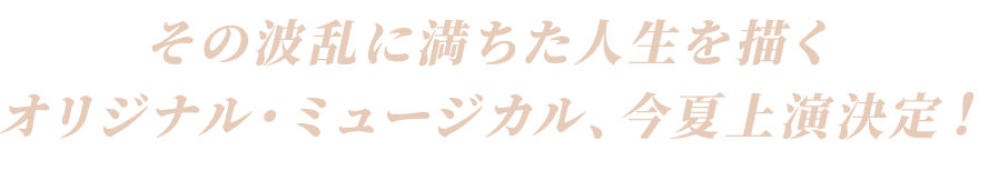 フランスの文学界で最も高名な女性作家の一人、シドニー=ガブリエル・コレット。自著『ジジ』を舞台化する際に当時無名のオードリー・ヘプバーンを主役に抜擢し一躍スターにした立役者。コレットを演じるのは、同じくミュージカル界で道を切り開き、輝き続ける明日海りお。